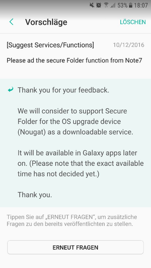 Po stažení Note 7 z prodeje se Samsung rozhodl přenést hned několik exkluzivních softwarových funkcí i na Galaxy S7 a S7 Edge, které budou součástí aktualizace Android 7.0 Nougat. K dispozici na svém telefonu tak budete mít tzv. Always-on display, Samsung Pass, kombinované poznámky či již zmíněné zabezpečené složky.