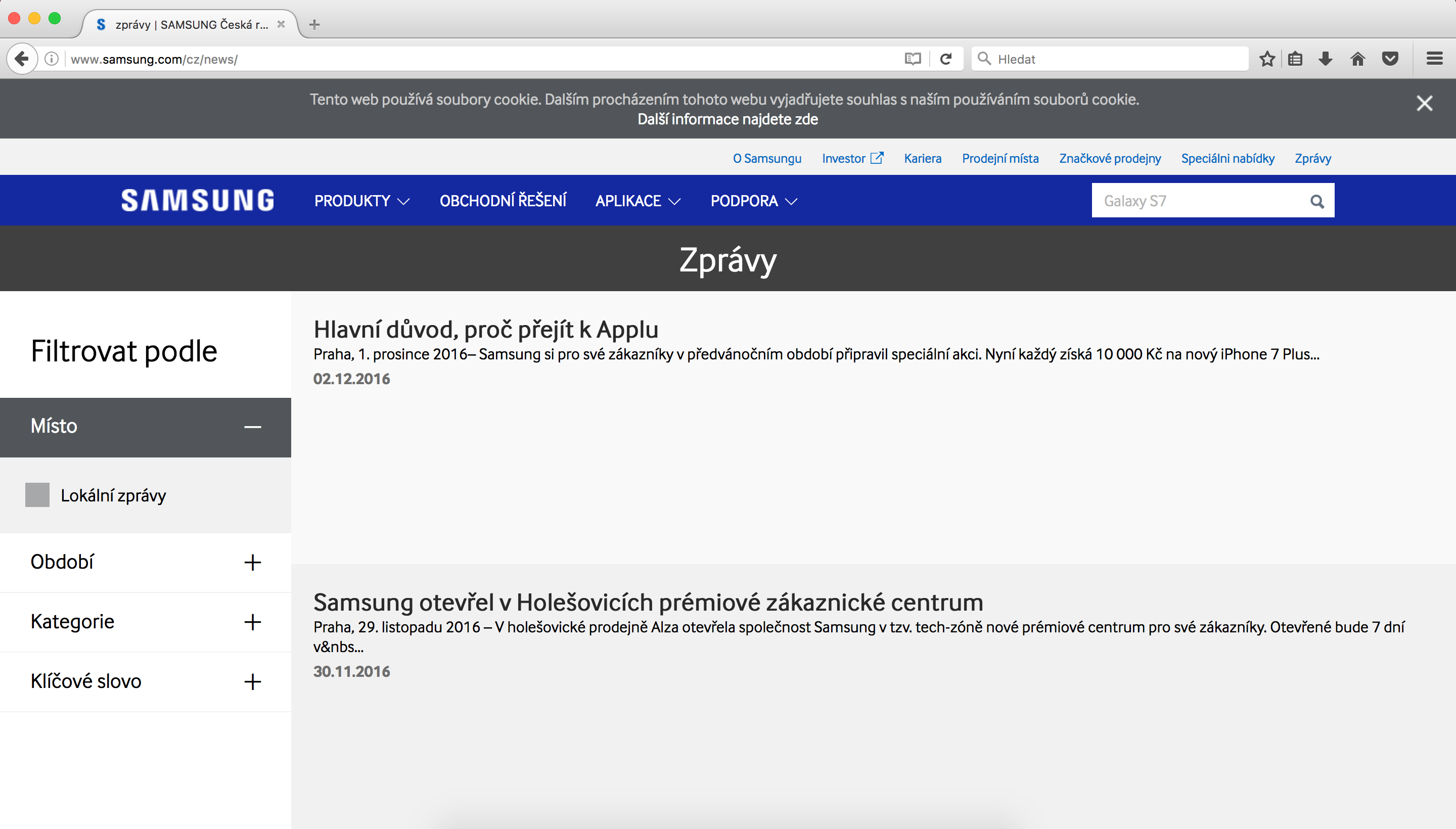 Na oficiálních stránkách Samsungu pro Českou republiku se objevil velmi zajímavý a pro někoho až zdrcující článek. Samsung na svém webu uvedl „Hlavní důvod, proč přejít k Applu“. Samsung v článku uváděl, že každý zákazník má možnost získat až 10 000 Kč na nový iPhone 7 Plus, pokud vrátí svůj nepoškozený Note 7. Prozatím nevíme, co je na článku pravdivého. Zřejmě se bude jednat o vtípek tuzemských „hackerů“. Tak či onak, je to velmi dobrý vtípek a autory musíme pochválit za kreativitu. Na stránkách však článek již nenajdete, Samsung vše rychle napravil. O oficiálním prohlášením vás budeme informovat prostřednictvím článku.