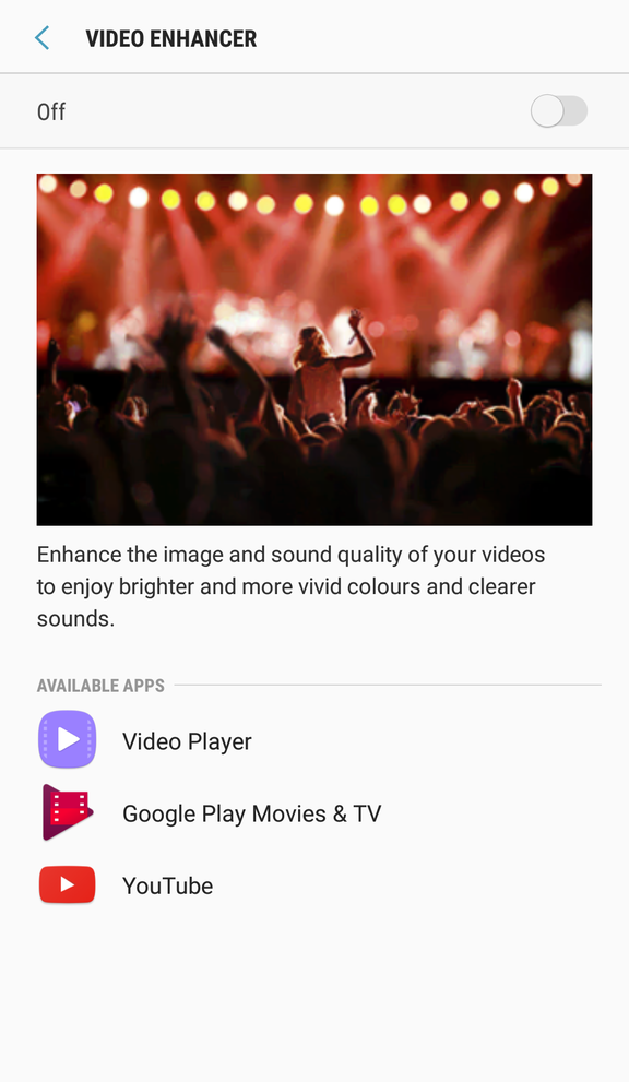 Další exkluzivní věcička pouze pro modely Galaxy S7 s Androidem ve verzi 7.0 Nougat. Tato funkce byla převzata z problémového Note 7, ovšem na S6 jej nečekejte. Takzvaný „video enhancer“ dokáže zlepšit barvy a kontrast ve videu, a další.
