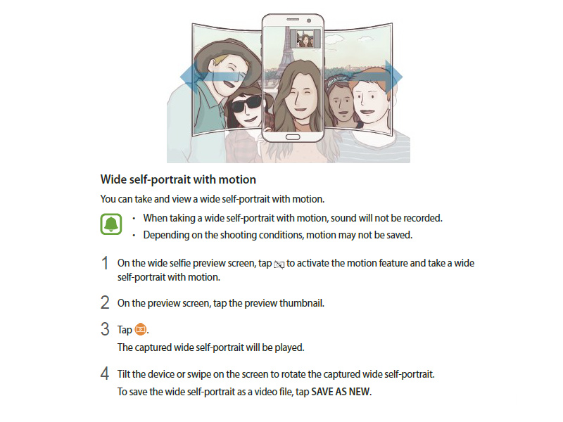 Tato funkce nebude dostupná jen pro Galaxy S6 a S6 Edge, ale také pro S7 a S7 Edge majitele, jejichž zařízení běží na Androidu 6.0 Marshmallow. Nicméně, nová aktualizace 7.0 Nougat vše mění. Takzvaný „široký autoportrét s pohybem“ není nic víc než funkce Motion Panorama. Ta bude dostupná pouze pro majitele Galaxy S7/Edge. Jedná se vlastně o „fičuru“, díky které můžete vytvářet selfie GIF a tak dále.