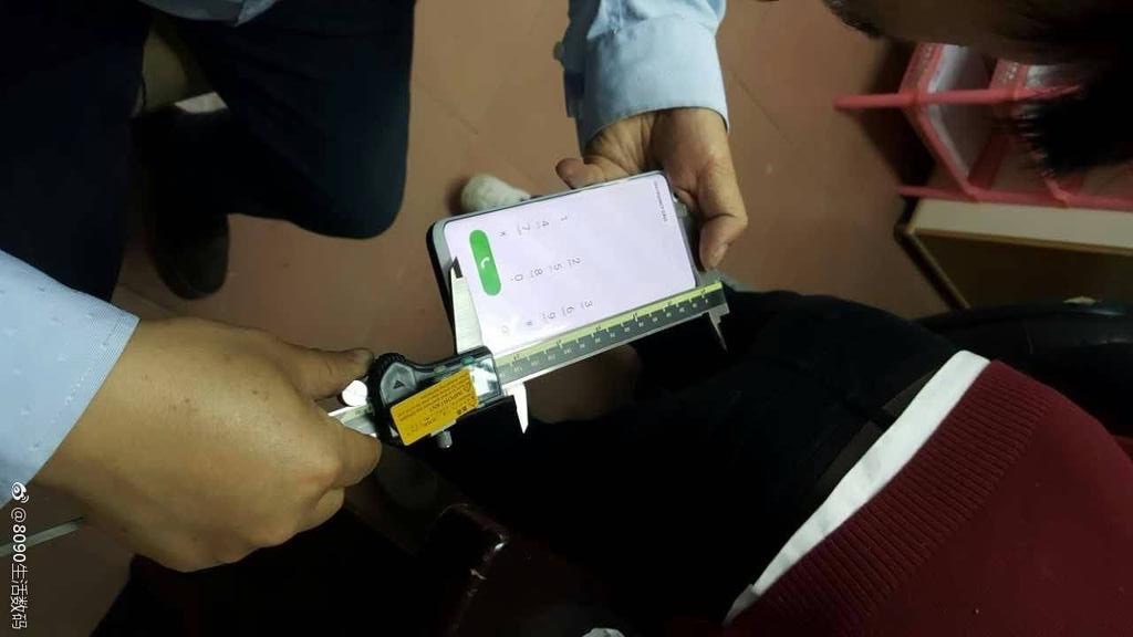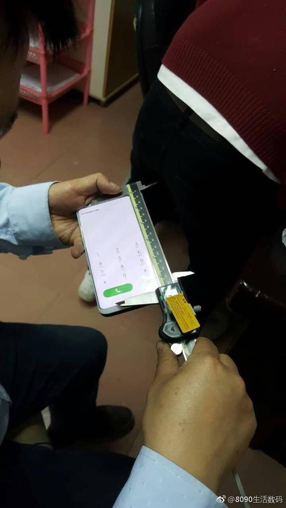 Bohužel na světlo světa se dostaly jen dvě fotografie, přičemž na jedné z nich není chystaný telefon ani pořádně vidět, protože jsou přeměřovány jeho rozměry. Na druhé fotografii se však ukazuje celá přední strana smartphonu, kde díky bílému šasi vynikly všechny senzory, přední fotoaparát a hlavně pak i skener oční duhovky nad displejem.
