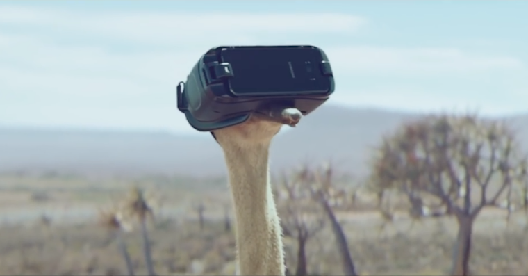 „Vytvořili jsme něco, co nemůže být vytvořeno. Tudíž vy můžete dělat věci, které nemohou být provedeny.“ Tak doslova končí nová reklama Samsungu na brýle Gear VR, kterou představil minulý týden. Jde o dokonale vtipný reklamní spot, kdy si zvědavý pštros omylem nasadí brýle pro virtuální realitu od Samsungu a poprvé tak pozná, virtuální svět.