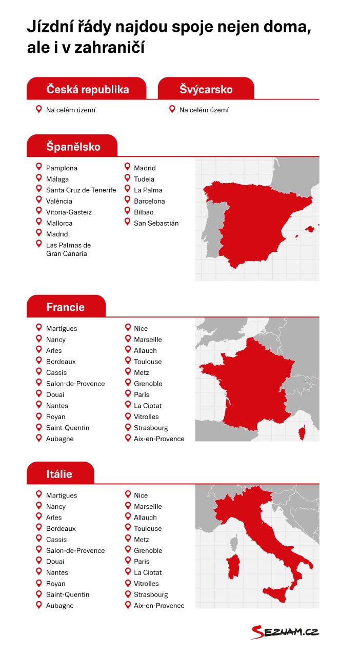 V Evropě je běžným standardem otevřenost strojově čitelných dat z jízdních řádů. Díky tomu mají lidé k dispozici spoustu aplikací od různých poskytovatelů, které jsou na těchto datech založené. Česká republika je bohužel negativní výjimka: data z jízdních řádů musí dopravci ze zákona pod hrozbou sankcí poskytovat jedné firmě. Zájem uživatelů je až na posledním místě. Pozitivním příkladem může být naopak Švýcarsko: veškerá data o jízdních řádech jsou dostupná všem. Jízdní řády od Seznam.cz proto vyhledávání v kompletních švýcarských jízdních řádech také nabízejí. „Švýcarsko je země, která by pro nás v otevřenosti dat mohla být vzorem. Samozřejmě není v Evropě samotné. Cestovatele proto potěšíme také jízdními řády vybraných velkých měst z Itálie, Španělska a Francie. Namátkou jmenujeme Florencii, Benátky, Bolognu, Palermo, Grenoble, Marseille, Nice, Bordeaux, Paříž, Barcelonu, Madrid, Valencii či Malagu. Výběr je už nyní velký a budeme jej neustále rozšiřovat,“ dodává Jan Štěpán.