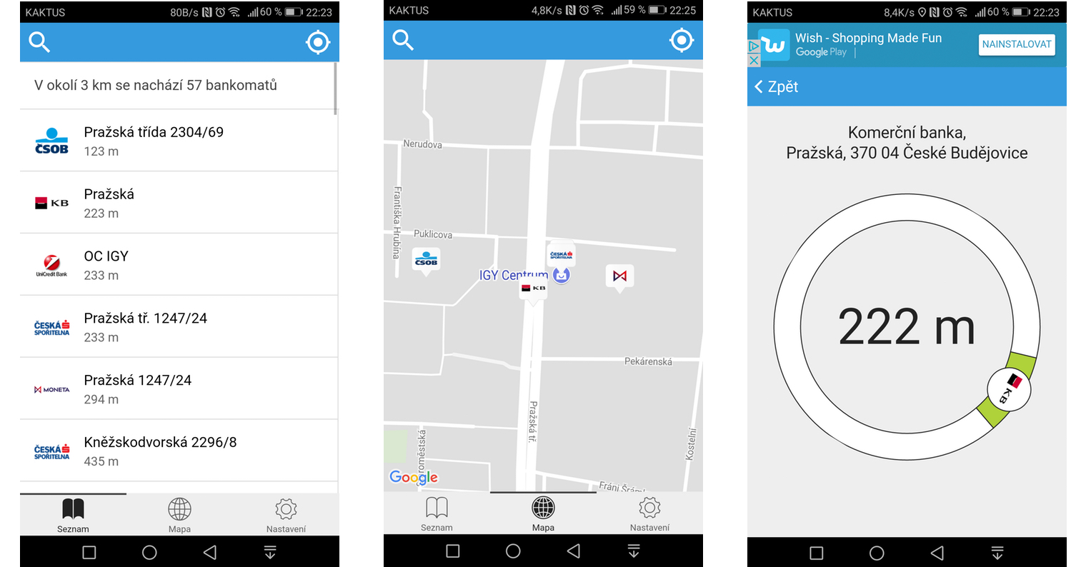 Určitě se vám už stalo, že jste byli na výletě v nějakém městě, peněženka prázdná a vy jste nutně potřebovali hotovost, protože kartou platit nešlo. Potřebujete se tedy co nejrychleji dostat k bankomatu, a to ještě nejlépe k nějakému od banky, kde máte účet, abyste nemuseli zbytečně platit poplatky. Abyste ale nemuseli zbytečně bloudit po městě a strávit zbytečný čas hledáním, vymyslel český vývojář Daniel Odvarko aplikaci Bankomaty CZ & SK, která vám za zlomek vteřiny vypíše na seznamu případně zakreslí na mapě všechny blízké bankomaty v České republice a na Slovensku.