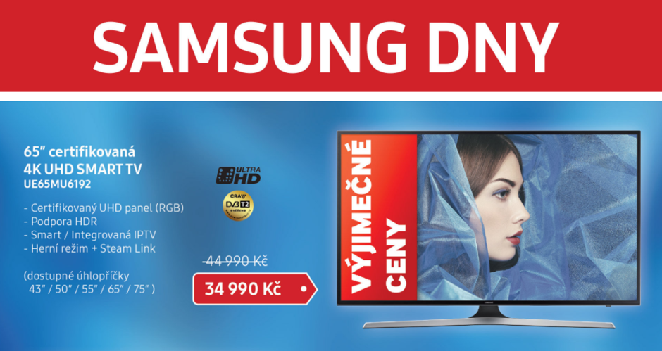 | UE65MU6192UXXH | 44 990 Kč | 34 990 Kč |