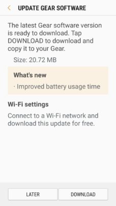 Poté, co se internetová fóra Samsungu zaplnila stovkami příspěvků od nešťastných uživatelů hodinek, jihokorejský gigant vadnou verzi aktualizace stáhl a dále ji mezi uživatele nedistribuoval. Distribuci ale znovu před pár dny v některých zemích obnovil. Verze, kterou si mohou uživatelé stáhnout, je však již bez chyb a výdrž baterie navrátí zpět do normálu.