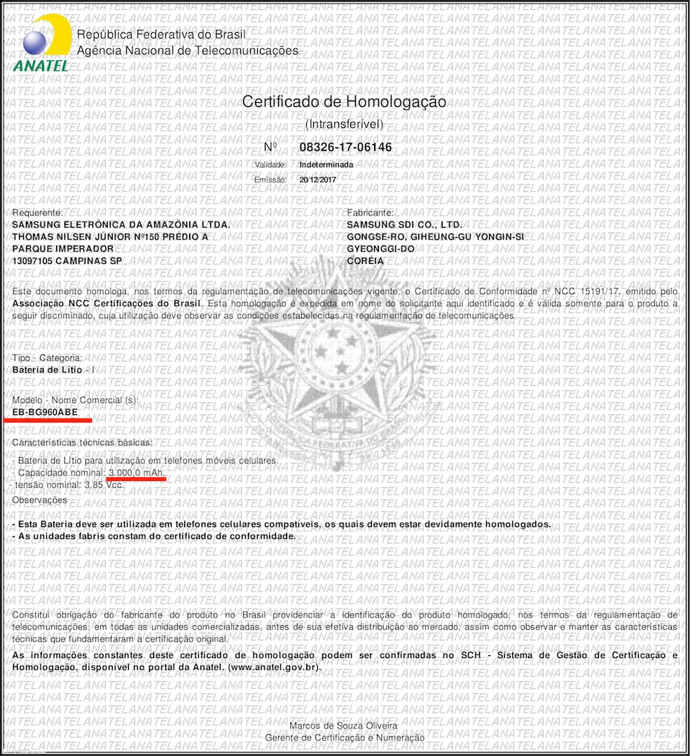 Zatímco nám únik krabičky chystaného Galaxy S9 před pár dny prozradil pár poměrně zajímavých informací, kapacitu baterie jsme se z ní bohužel nedozvěděli. Jelikož se však chystá Samsung svou novou vlakovou loď vypustit již poměrně brzy, s čímž souvisí i celá řada různých certifikací a potvrzení v zemích po celém světě, lze si tuto důležitou informaci zjistit i tímto způsobem. Právě certifikace u brazilského telekomunikačního institutu ANATEL nám totiž přesnou kapacitu baterie prozradila.