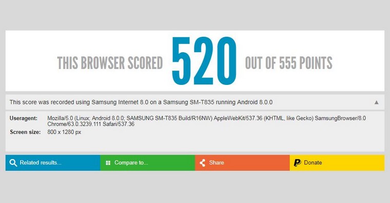 Stejný model Galaxy Tab S4 se objevil také v benchmarkovém testu HTML5. Benchmark HTML5 sice neodhaluje žádné klíčové specifikace, nicméně opět naznačuje, že displej tabletu bude mít poměr stran 16:10. Dále uvádí, že zařízení běží na systému Android 8.0. Sporné však je rozlišení, které je podle HTML5 pouze 1280×800 pixelů.