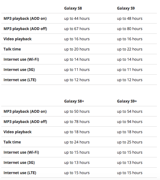 I letos se Samsungu podařilo svou novou vlajkovou loď “zúspornět” a její výdrž baterie tak při určitých úlohách protáhnout. Například přehrávání hudby se spuštěným Always On Display se protáhlo ze 44 hodin u Galaxy S8 na 48 hodin u modelu nového. Čtyřhodinové prodloužení pak zaznamenal i “pluskový” model, který vydrží hrát místo 50 hodin rovnou hodin 54. Pokud však Always On Display deaktivujete, u menšího modelu se při poslechu hudby rázem dostanete z 67 hodin na slušných 80. V případě většího modelu si pak užijete ještě o další tři hodiny více. Tím však velké prodlužování výdrže baterie končí. Při dalším porovnání loňského a letošního modelu totiž zjistíte, že si dále polepšil jen u hovoru, který můžete u menšího modelu protáhnout ze 20 na 22 hodin, “plusko” si pak polepšilo jen o hodinu a z 24 hodin se vyšvihlo na 25 hodin.