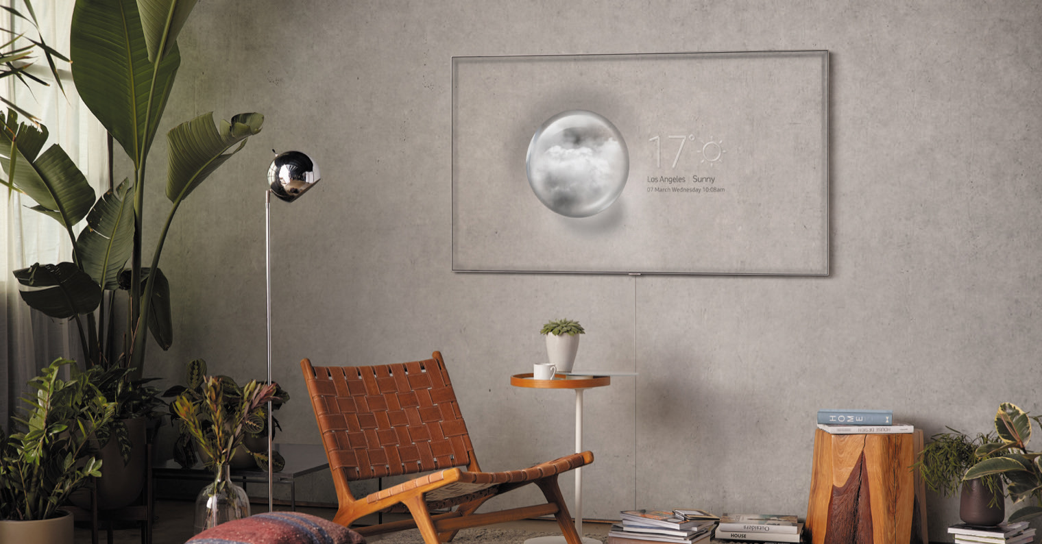 Režim Ambient přes mobilní aplikaci rozpozná barvu a vzor zdi, na které je televizor nainstalován, a dokáže obrazovku přizpůsobit dekoru interiéru, čímž vznikne zdánlivě průhledná obrazovka a vy tak na již vypnutém televizoru neuvidíte jenom prázdnou černou obrazovku. Samsung tím nabízí elegantní řešení všem uživatelům, kteří preferují velkoformátové televizory, ale nechtějí ve svém interiéru velkou rušivou černou plochu. Pokud je televizor v režimu Ambient v průměru hodinu a půl ráno a hodinu a půl večer, což jsou nejfrekventovanější časy aktivity většiny lidí ve svých domácnostech, spotřeba energie vzroste měsíčně ani ne o 20 korun.