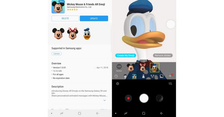 Před několika dny se však ve funkci AR Emoji objevila další postavička, tentokrát Kačer Donald. Ovšem postavička se neobjeví v telefonu automaticky, musíte si doplněk stáhnout prostřednictvím obchodu Galaxy Apps. Po instalaci se objeví efekt přímo v samotné aplikaci fotoaparátu.