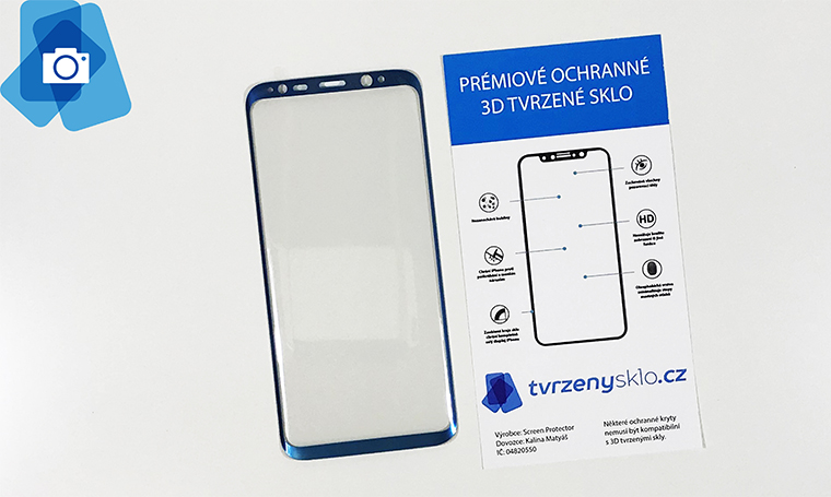 Zaoblené Tvrzené sklo Samsung Galaxy S8 v modré barvě, k dispozici je i celoprůhledné nebo černé provedení, nechybí ani skla na nejnovější Samsung Galaxy S9.
