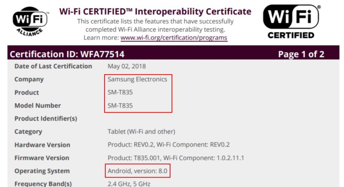Samsung by měl v letošním roce představit tablet Galaxy Tab S4, o němž na povrch prosakují důležité informace. Prozatím víme, že zařízení bude disponovat 10,5palcovým displejem s rozlišením 2 560 × 1 600 pixelů s poměrem stran 16:10, jak odhalily výsledky benchmarku GFXbench. Ovšem nyní nadcházející tablet získal certifikaci od Wi-Fi Alliance, přičemž z certifikace je patrné, že tablet poběží na nejnovějším systému Android 8.0 Oreo.