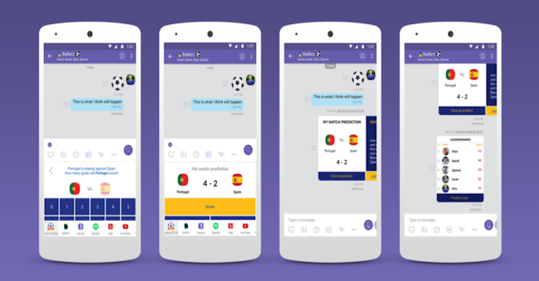 • Uživatel sdílí své předpovědi zápasů ve skupinovém chatu prostřednictvím nového rozšíření World Football Chat Extension.