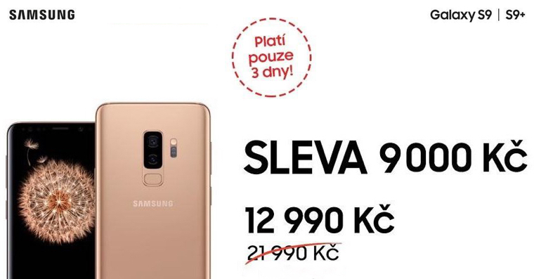 - Galaxy S9 Plus (256 GB) – 17 990 Kč (původně 26 990 korun)