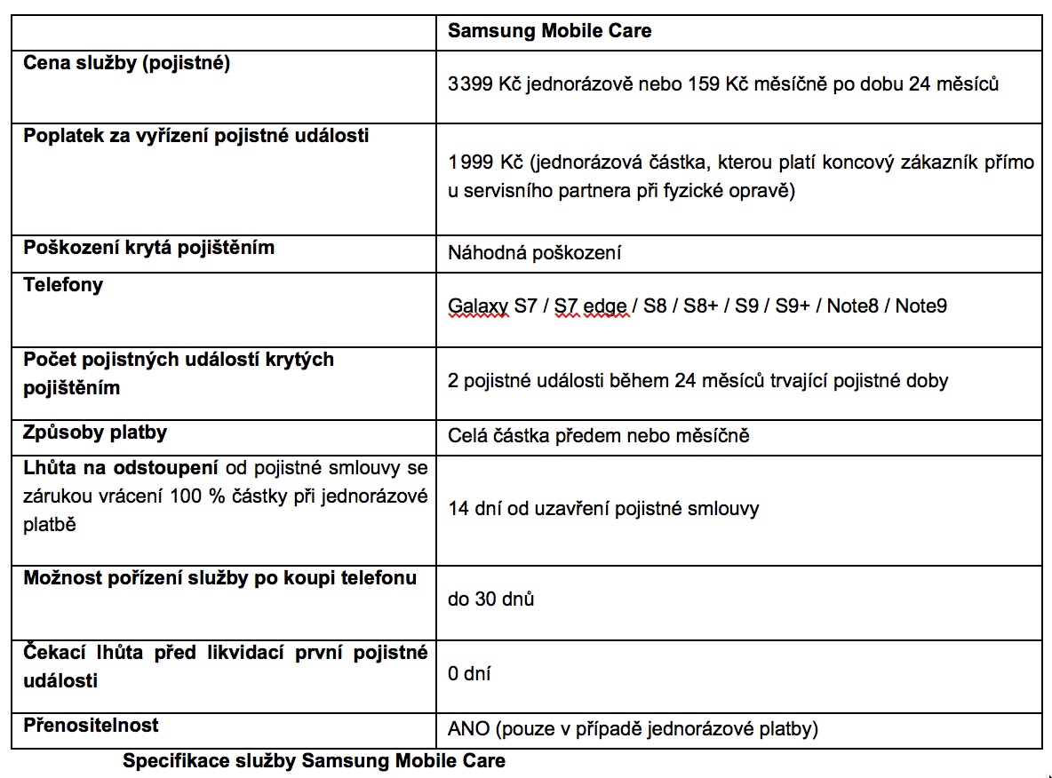 Známe to asi všichni – stačí chvilka nepozornosti, telefon nám vypadne z ruky a následuje řada starostí a zařizování. Samsung jde proto svým zákazníkům naproti s novou službou Mobile Care, která jim usnadní každodenní používání telefonu. Služba Samsung Mobile Care představuje mobilní pojištění, díky němuž proběhnou všechny opravy vašeho mobilního telefonu Samsung autorizovanými techniky Samsung a za použití originálních dílů. Tato služba je aktuálně dostupná pro majitele telefonů Samsung Galaxy S7, S7 edge, S8, S8+, S9, S9+, Note8 a samozřejmě i pro nejnovější model Galaxy Note9.