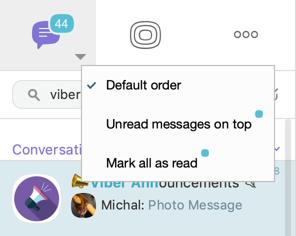 Pro uživatele desktopové aplikace Viber, zejména pro ty, kteří ji používají především k firemní komunikaci, přichází další cool novinka: pokud obdržíte zprávu, když jste zaneprázdněn/a a nemůžete na ni hned odpovědět, můžete ji udržet v horní části seznamu zpráv, dokud nebudete mít čas se jí věnovat. Přesuňte ukazatel myši na kartu chatu, klikněte na malý trojúhelník a vyberte jednu z následujících možností: a) Výchozí pořadí (aby vaše příchozí zprávy zůstaly v pořadí, v jakém dorazily) nebo b) Nepřečtené zprávy nahoře (aby Viber udržoval nepřečtené zprávy vždy nahoře, takže neztratíte přehled o důležitých zprávách od vašich vrstevníků); a dokonce c) Označit všechny přečtené zprávy – pokud jste se dozvěděli, co se mezitím stalo a na obrazovce chatu už nepotřebujete vidět neotevřené zprávy.