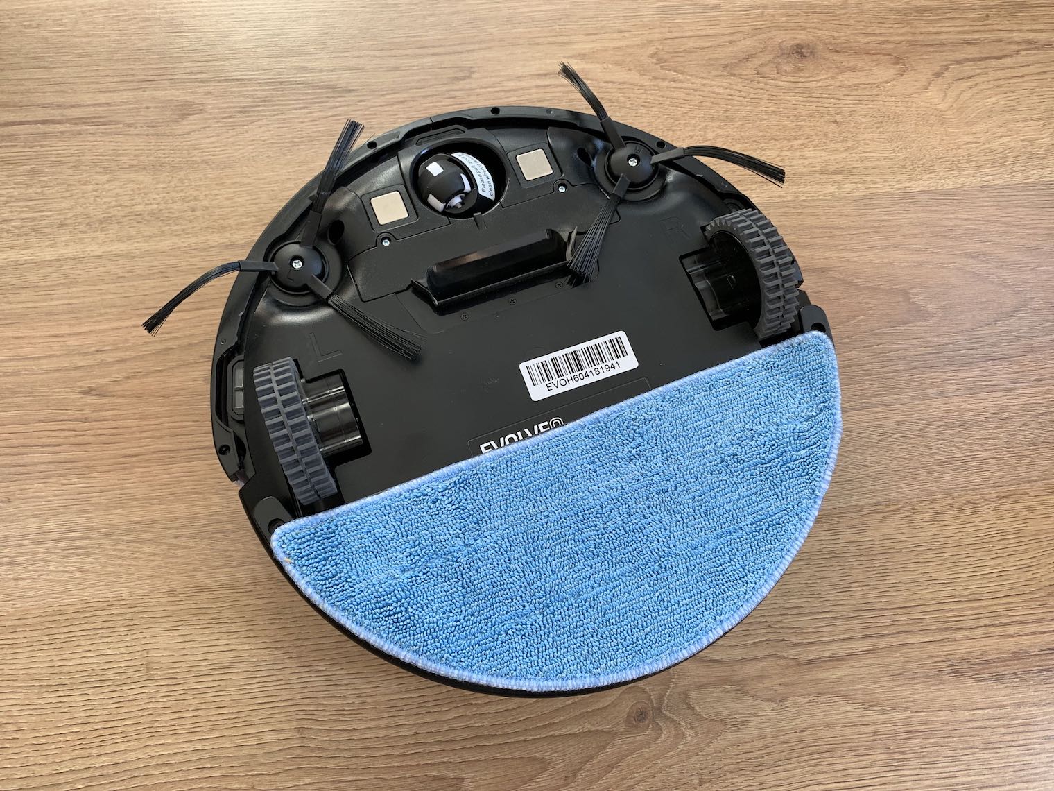 Jak už bylo zmíněno výše, RoboTrex H6 vám podlahu nejenom vysaje, ale také vytře. V takovém případě je potřeba vyměnit zásobník na prach za nádobku s vodou, která je součástí balení. Na spodek vysavače se pak připevní mop z mikrovlákna, jenž během vytírání nasává vodu z nádobky a vysavač svým pohybem po místnosti vytírá. Jde spíše o klasické setření podlahy, i tak je ale poměrně účinné a na pravidelný úklid postačí. Menší nevýhoda ale spočívá v tom, že pro vytírání nemůžete použít žádný čistící přípravek, protože nádobku musíte naplnit čistou vodou. Podlahu ale můžete také setřít jen suchým mopem, díky čemuž se po úklidu leskne.