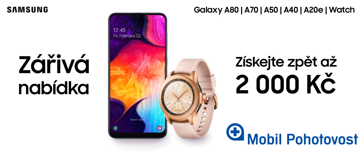 - Samsung Galaxy A40 – 1 000 Kč (+ sluchátka v hodnotě 990 Kč zdarma)
