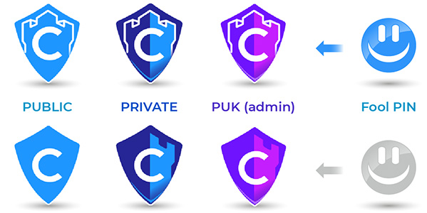 Jak už jste možná mohli pochopit, tak Camelot nabízí tři vrstvy zabezpečení. První z nich je klasická vrstva, která neposkytuje prakticky žádné zabezpečení. Ta se projevuje tehdy, kdy aplikaci Camelot otevřete. Druhou vrstvu poté můžete zpřístupnit tak, že v pravém dolním rohu kliknete na tlačítko Camelot a zadáte passcode či PUK, čímž dojde k odemčení souborů, které jsou pod passcodem/PUKem vedeny. Třetí vrstva se poté odemkne tehdy, kdy na ikoně Camelotu podržíte prst delší dobu a zadáte Fool-PIN. Tímto se zobrazí veškeré soubory, které potřebujete.