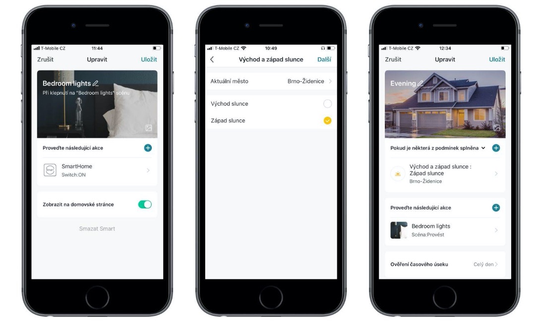 Zapojené spotřebiče můžete také načasovat nebo sepnutí navázat na aktuální situaci – např. váš příchod domů, východ a západ slunce, venkovní teplota či vlhkost vzduchu. Stačí k PowerCube vytvořit akci (zapnutí/vypnutí) a přidat podmínku za které se akce spustí.