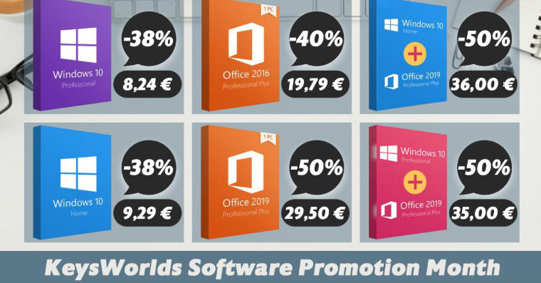 - Windows 10 Pro + Microsoft Office 2019 Pro: €35.00