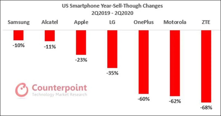 Bylo jasné, že pandemie koronaviru negativně pohne ekonomikou a prodeji i mobilních zařízení. Otázkou jen bylo, jak moc. Pokud pohlédneme na Samsung, víme, že například v Indii ve druhém čtvrtletí prodeje meziročně klesly o těžko uvěřitelných 60 %. Pokud se ale zaměříme na prodeje Samsungu ve Spojených státech, nebylo to tak hrozné.