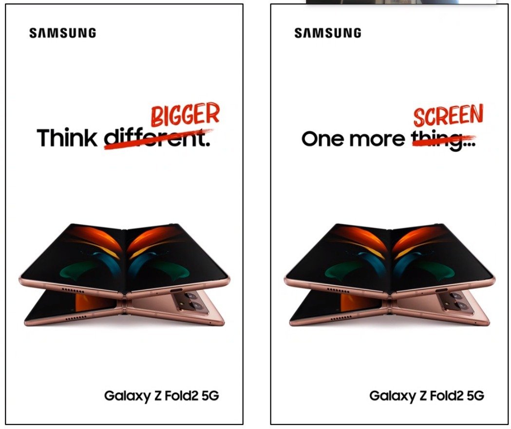 Apple dnes vydává svůj očekávaný iPhone 12 a při té příležitosti rozjíždí Samsung svou vlastní reklamní kampaň, která odkazuje na marketingovou historii jablíčkářské společnosti. Nové billboardy s přeškrtnutými minulými slogany Applu se objevily v Nizozemsku, a to v přímé blízkosti obchodů americké firmy. Jeden z billboardů přepisuje slavné „think different“ na „think bigger“, zatímco druhý mění „one more thing“, hojně používané při konferencích Applu, na „one more screen“. Sami se můžete níže podívat na to, jak reklamy ve skutečnosti vypadají.