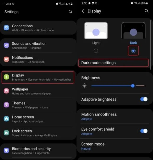 Jako jiné smartphony Galaxy i Galaxy S21 Ultra disponuje tmavým režimem, který je možné zapnout, vypnout nebo naplánovat. Tento mód ulevuje očím i baterii a tím, že jej budete mít aktivovaný i přes den, můžete výdrž baterie značně prodloužit, zejména pokud telefon používáte intenzivně. Tmavý režim aktivujete takto: