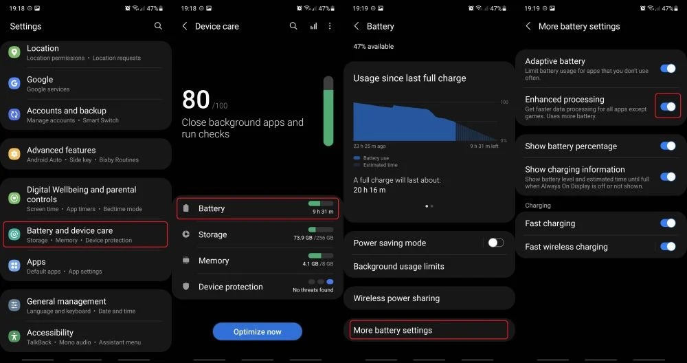 Enhanced processing je funkce, která je součástí Androidu 11/One UI 3 a která vylepšuje výkon všech aplikací kromě her. Vzhledem k již tak vysokému výkonu telefonu je však poněkud nadbytečná. Vypnete ji tímto způsobem: