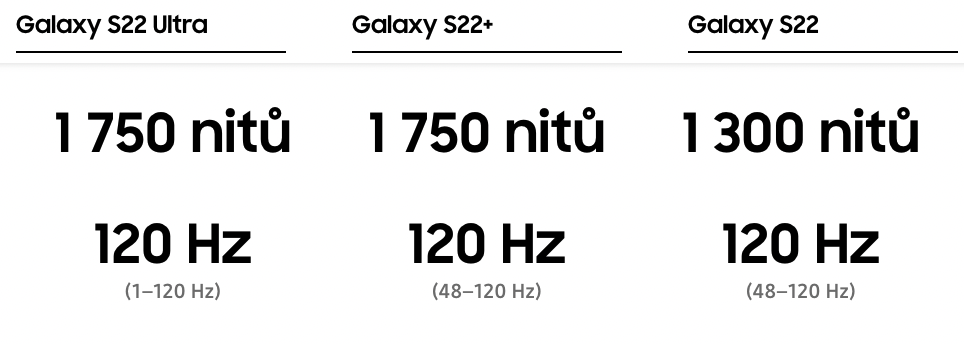 Včera jsme vás informovali o tom, jak společnost Samsung změnila ve své tiskové zprávě specifikace ohledně obnovovací frekvence displejů řady Galaxy S22 a S22+. Spodní hranici 10 Hz totiž posunula až na 48 Hz. To, že je tomu skutečně tak, nyní potvrzují i oficiální stránky Samsung.cz a ostatně i české zastoupení společnosti.