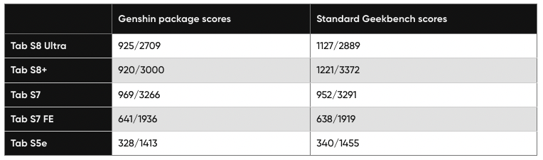 Svůj výkon totiž škrtí nejen telefony, ale i tablety, a to konkrétně nejnovější vlajková řada Galaxy Tab S8. Jak zjistil magazín Android Police, omezování výkonu ze strany Samsungu mělo v případě jeho nejnovějších tabletů vliv na ztrátu u jednojádrového testu mezi 18 až 24 % a u vícejádrového procesu šlo o 6 až 11 %. U tabletů řady Galaxy Tab S7 a Tab S5e však k podobnému pokles výkonu nedošlo, takže je evidentní, že se jedná o vlastnost GOS (Game Optimization Service).