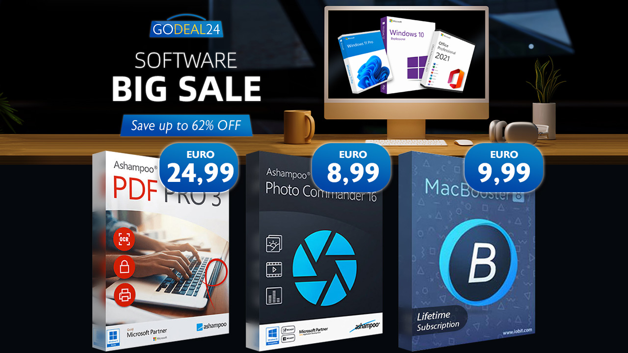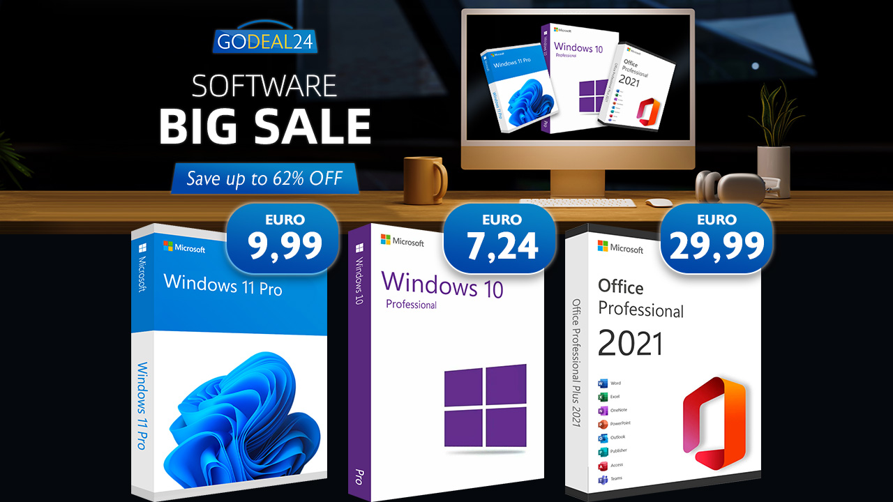 Godeal24 Office Software Sale: Windows 10 Pro pořídíte za pouhých 5,57 € (za PC)! Office 2021 Professional oficiálně stojí 439,99 $ (u Microsoftu), každopádně na Godeal24 pořídíte Office 2021 Professional za pouhých 29,99 €! Celkově navíc můžete ušetřit až 62 % na nákupu zvýhodněných balíčků kombinujících Windows spolu s balíčkem Office. Přesně teď tak máte perfektní příležitost pro upgrade vašeho softwaru!