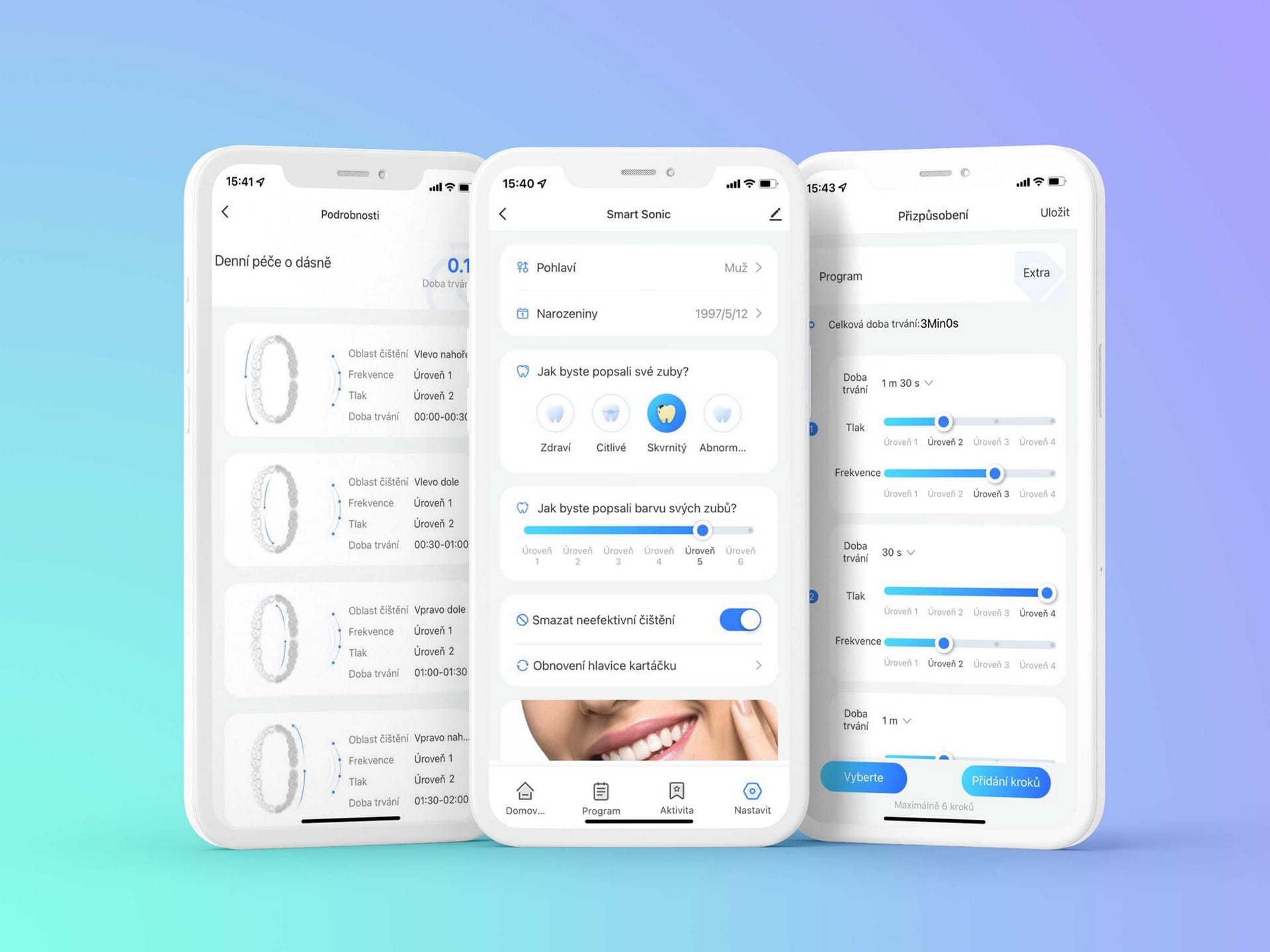 Největším benefitem chytrých zubních kartáčků z řady Niceboy ION je přítomnost hned několika čistících módů. Režimy Sensitive a Clean slouží pro obyčejné každodenní čištění zubů, přičemž nadále dokáže posloužit režim White, se zaměřením na odstranění povrchových nečistot, a ExtraCare. Ten je ze všech nejjemnější a slouží pro ochranu a masáž dásní. Zmiňovaný kartáček ION SmartSonic pak nabízí ještě něco navíc. Konkrétně se jedná o režim Smart, který lze individuálně přizpůsobit vašim potřebám skrze mobilní aplikaci. V té pak navíc najdete i nejrůznější kalendářní statistiky nebo analýzy jednotlivých čištění, a stejně tak vás appka informuje o nutnosti vyměnit hlavici kartáčku.