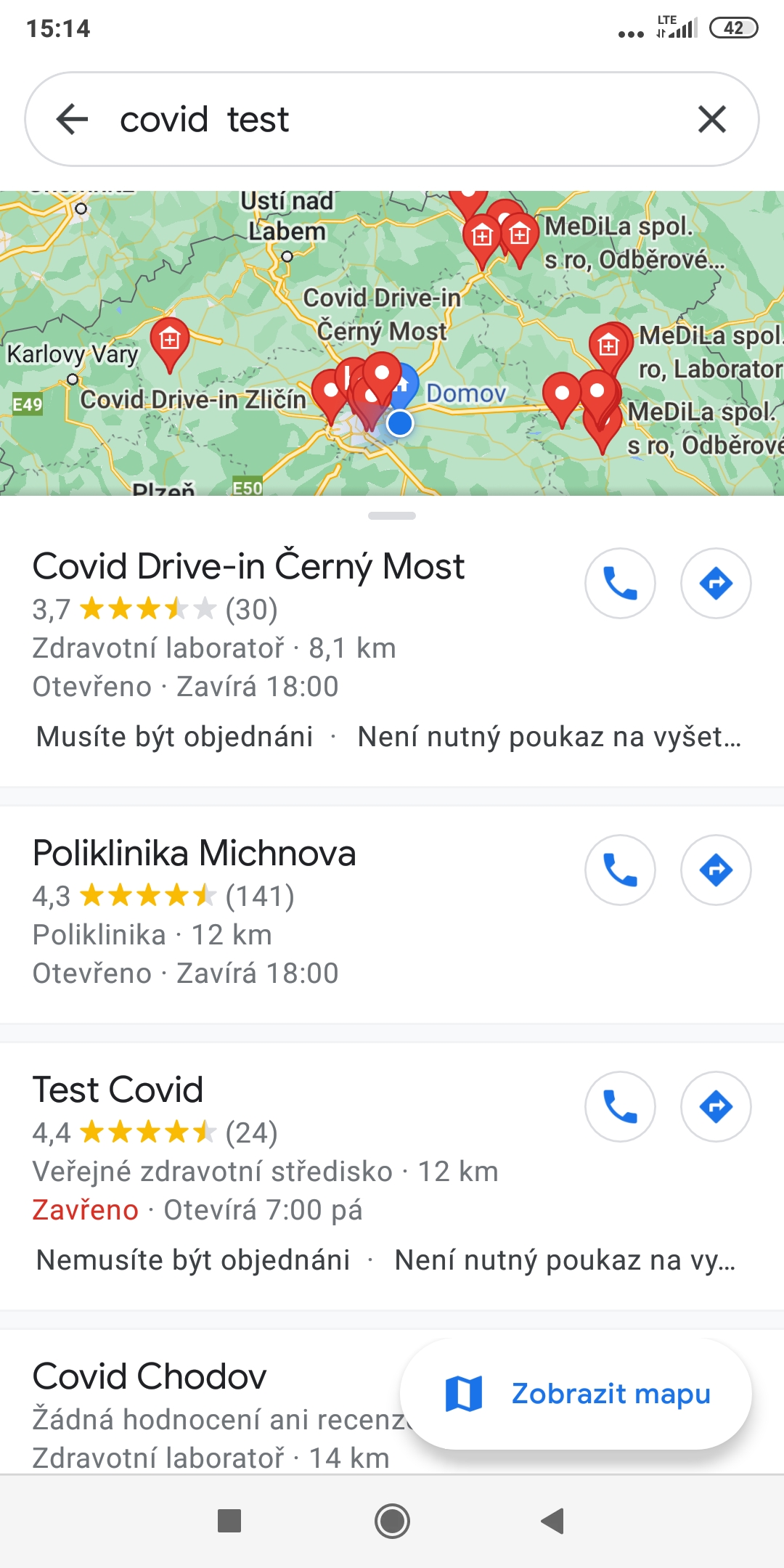 Ještě jste se nebyli očkovat proti onemocnění COVID-19? Mapy Google vám pomohou to napravit. Stačí, když do vyhledávače zadáte covid test, načež vám „vyjede“ seznam nejbližších očkovacích center ve vašem okolí.