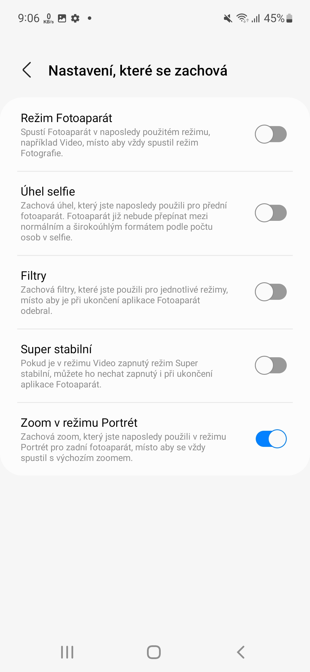 V Nastavení fotoaparátu v sekci Obecné rozklikněte nabídku Nastavení, které se zachová. Najdete zde několik možností, kdy je nejzajímavější především ta první – Režim Fotoaparát. Při každém spuštění aplikace se ta totiž spustí v režimu fotografování, což nemusí všem vyhovovat. Mohli jste předtím fotit portrét nebo natáčet video, a opětovným překlikáváním se v režimech vám může utéci příběh, který jste chtěli novou fotografií vyprávět. Pokud ale tuto možnost zapnete, tak při opětovném spuštění fotoaparátu budete vždy na té volbě, jako tomu bylo při posledním použití.