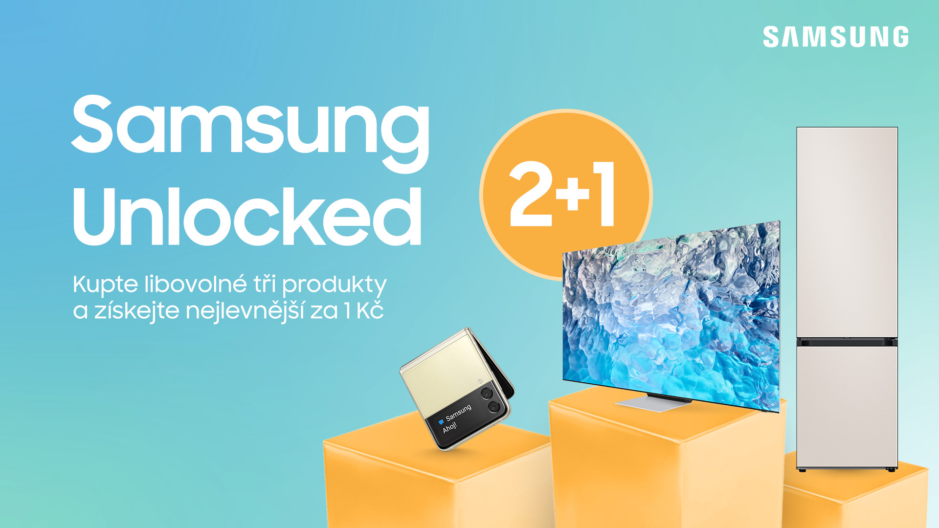 Komerční sdělení: Tento týden Samsung připravil hodně zajímavou slevovou akci Samsung Unlocked, díky které můžete při koupi tří různých produktů na e-shopu samsung.cz získat ten nejlevnější za pouhou korunu. Týká se kompletního sortimentu e-shopu s výjimkou mobilních telefonů řady Samsung Galaxy S22.