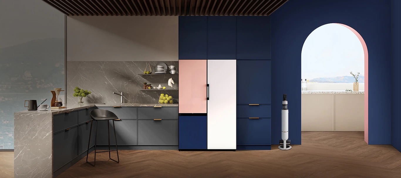 Chladnička Bespoke od Samsungu se prakticky okamžitě dočkala celosvětového uznání. Lidem totiž dává možnost kompletního přizpůsobení k obrazu svému. Lze ji proto nastavit tak, aby co možná nejlépe zapadla do konkrétního interiéru – respektive aby s ním splynula, nebo aby naopak maximálně vynikla a stala se tak naprostou dominantou kuchyně či domácnosti. V rámci konfigurace si lze mimo typu (samostatná chladnička/mrazák, nebo kombinace) vybrat i barvy dvířek.