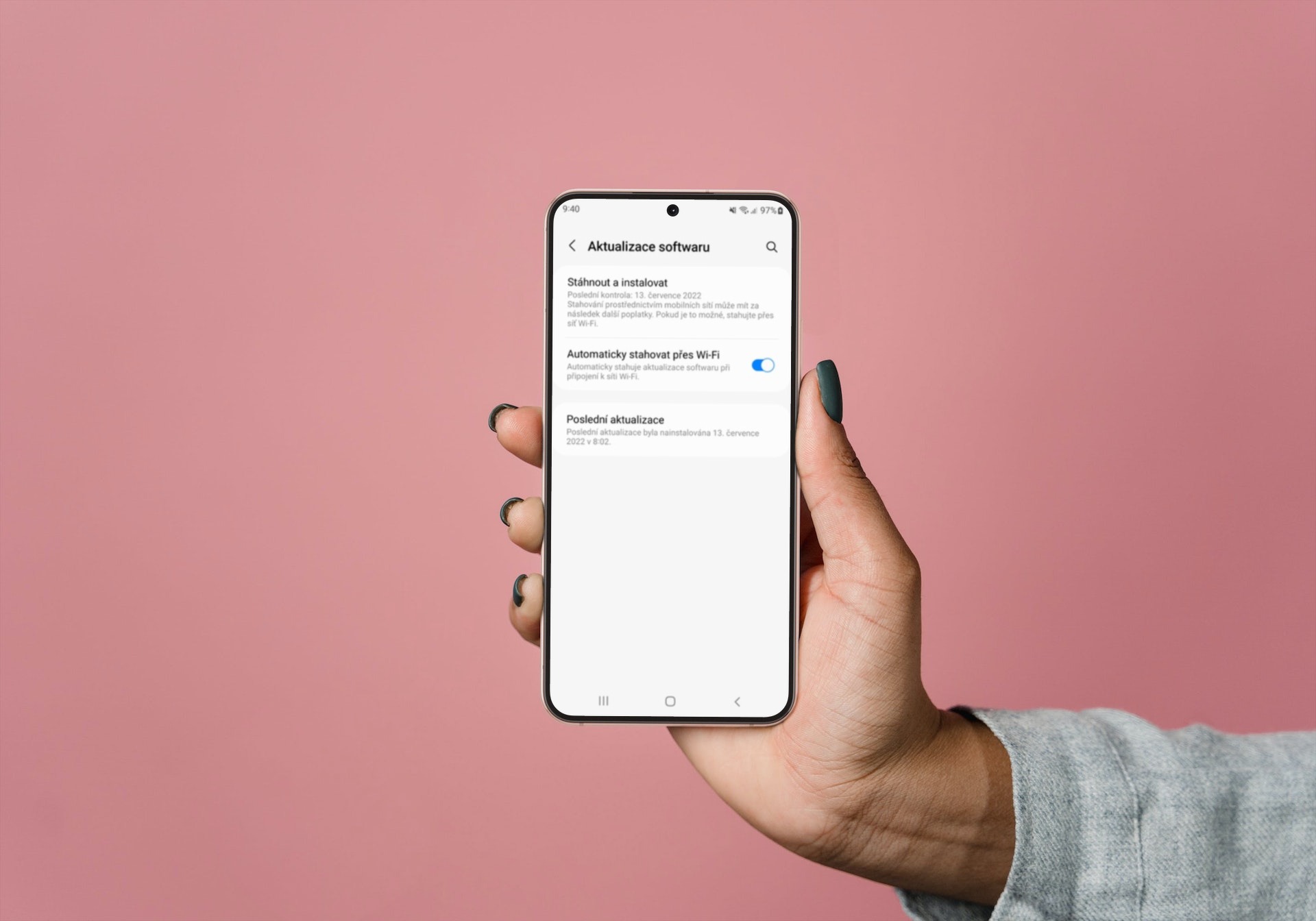 Ovšem i instalace nové verze softwaru od vás vyžaduje minimální úsilí. Stačí na obrazovce s detaily firmwaru, jehož součástí bývají pravidelné záplaty zabezpečení, stisknout tlačítko Stáhnout. Po stažení stačí potvrdit aktualizaci, telefon se restartujte, a po pár minutách s novou aktualizací opět naběhne, takže můžete opět pokračovat v práci. A pokud se informace o novém firmwaru neobjeví sama, vždy se na něj můžete dotázat ručně přes Nastavení – Aktualizace softwaru – Stáhnout a instalovat.