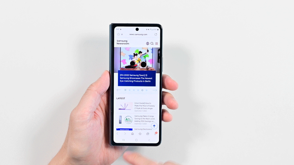 Přestávka je stejně důležitá jako efektivní práce. V takové chvíli zkuste otočit obrazovku plnou pracovních aplikací a podívat se na video na vnějším displeji, abyste se trochu uvolnili. Díky tenkým rámečkům a poměru stran optimalizovanému pro vnější displej můžete mít ze sledování videa nečekaně hluboký zážitek. S režimem Flex si můžete svůj Fold upravit tak, aby co nejlépe vyhovoval každé situaci.