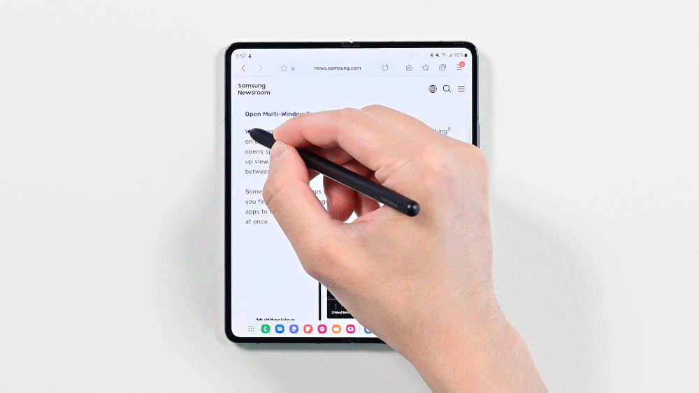Se stylusem S Pen pro Fold4 můžete přesně ovládat své mobilní zařízení, jako byste pracovali s myší na počítači. Na velkém displeji si můžete pohodlně dělat poznámky tak jako na tabletu a navíc je možné rychle kopírovat a vkládat text, odkazy nebo fotografie.