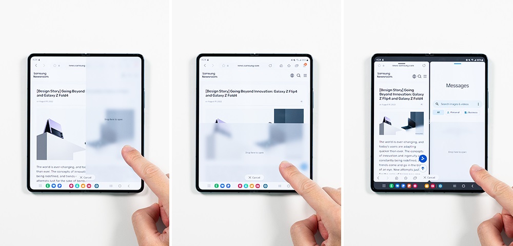 Stejně jako Flip4 i Fold4 disponuje režimem Flex, který vám umožní vytěžit z něj maximum z každého úhlu. Například využitím funkcí multitaskingu můžete spouštět více aplikací najednou. Jedno okno obrazovky můžete použít pro videohovor a další pro dělání poznámek, zatímco si prohlížíte materiály z pracovní schůzky.