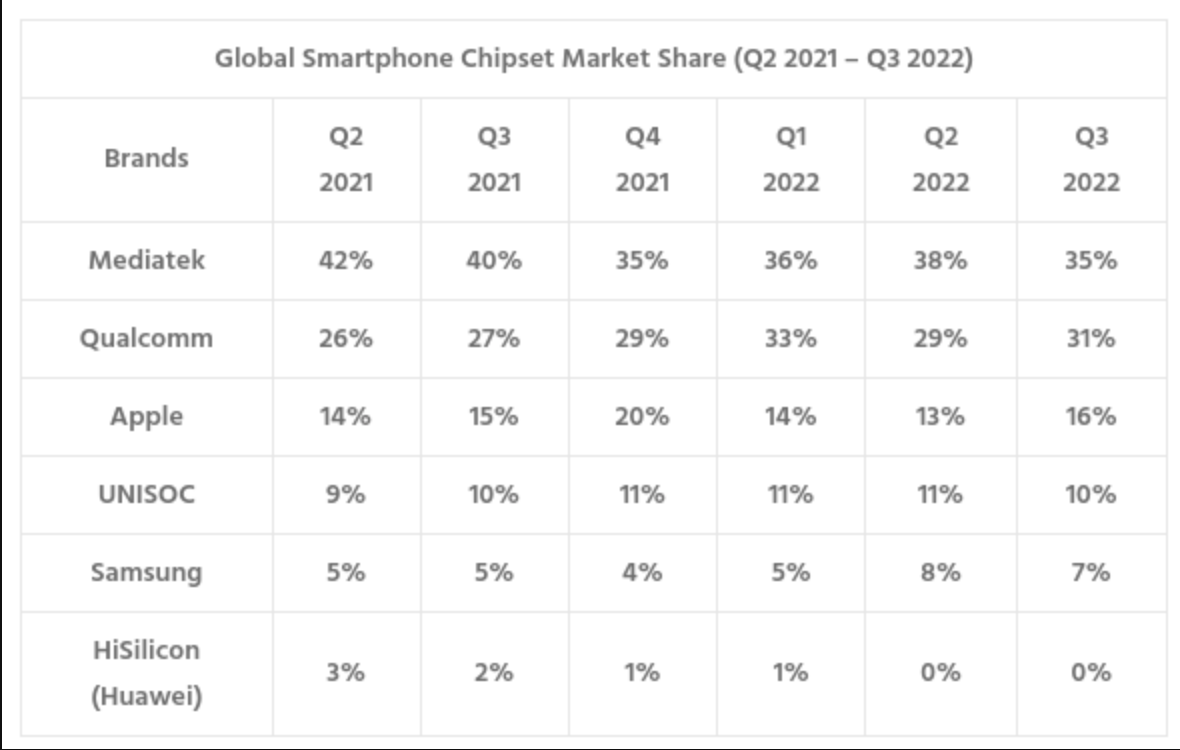 Když jsme byli na představení řady Galaxy S23, bavili jsme se s českým zastoupením společnosti a samozřejmě došlo i na řeči kolem čipů. Neoficiální zprávy zní, že Samsung nehodlá pracovat na špičkových čipech, které by se měly do řad Galaxy S vrátit. I když je tedy zmíněný únik poměrně věrohodný, nehodí se mu přikládat zas takovou váhu. Může se ostatně jednat i o starší zprávu, která na povrch vyplula až nyní. Jen pro zajímavost, podle Counterpoint Research měl Samsung ve 3. čtvrtletí 2022 celosvětový podíl na trhu s čipovými sadami pro chytré telefony ve výši 7 % oproti 5 % ve 3. čtvrtletí 2021 a patří mu tak až páté místo v tabulce výrobců čipů.