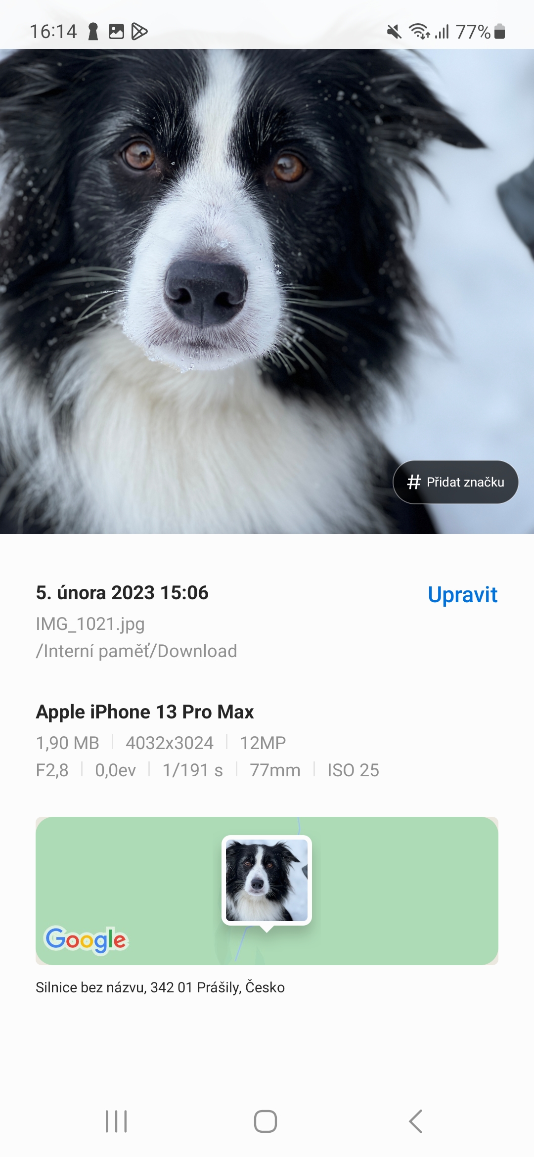 Když přejedete prstem nahoru během zobrazení obrázku nebo videa ve složce Galerie, uvidíte, kdy a kde byl obrázek pořízen, kde je obrázek uložen a další informace. Nyní s o poznání jednodušším rozvržením.