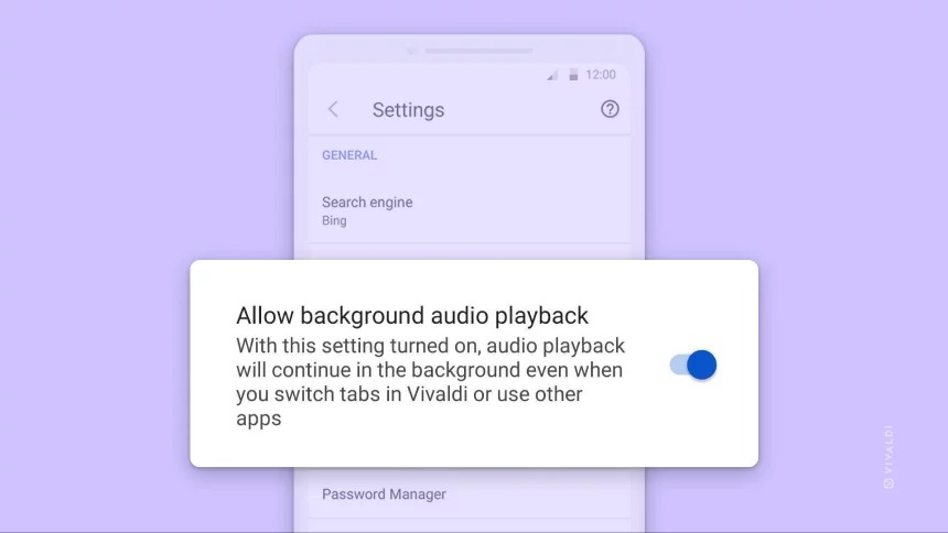 Možnost pokračovat v přehrávání zvuku, když Vivaldi běží na pozadí