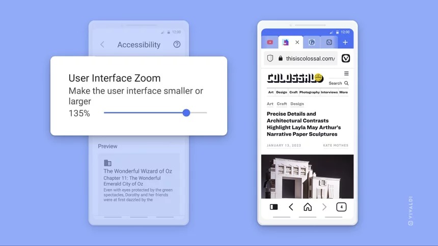 Někdy je však velikost prvků na dotykové obrazovce příliš malá nebo naopak příliš velká pro snadné ovládání. Zaleží na rozlišení a dalších faktorech. Nová verze Vivaldi proto přináší lepší škálování uživatelského rozhraní, spolu s vylepšeným zoomem. Toto vylepšení je zvláště užitečné pro auta. Novou verzi prohlížeče stahujte zde.