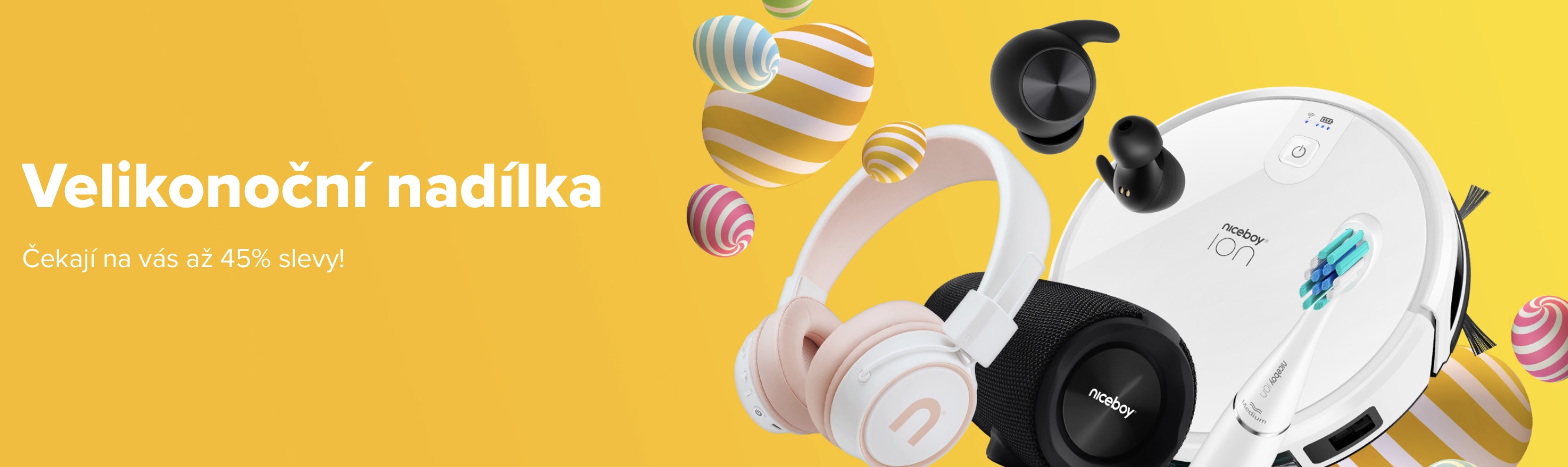 Komerční sdělení: Niceboy přináší pestrou velikonoční nadílku plnou úžasných slev! Při příležitosti současné akce si tak můžete přijít na nejrůznější produkty, které jsou k dostání s až 45% slevou. A rozhodně je z čeho vybírat! Do akce totiž zavítaly jak populární reproduktory či bezdrátová sluchátka, tak i další parádní kousky z rozsáhlé nabídky. Díky tomu si tak můžete přijít i na herní příslušenství, akční kamery či produkty pro chytrou domácnost.