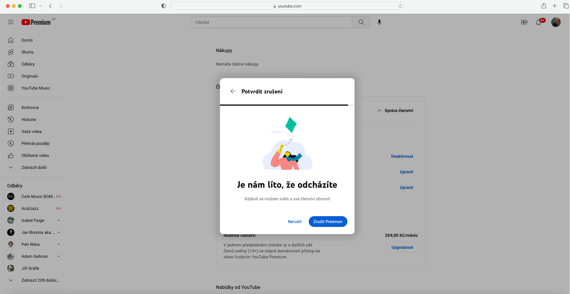 Ať zvolíte kteroukoli, poslední informace vám sdělí, že je YouTube líto vašeho odchodu a zbývá odkliknout Zrušit Premium.