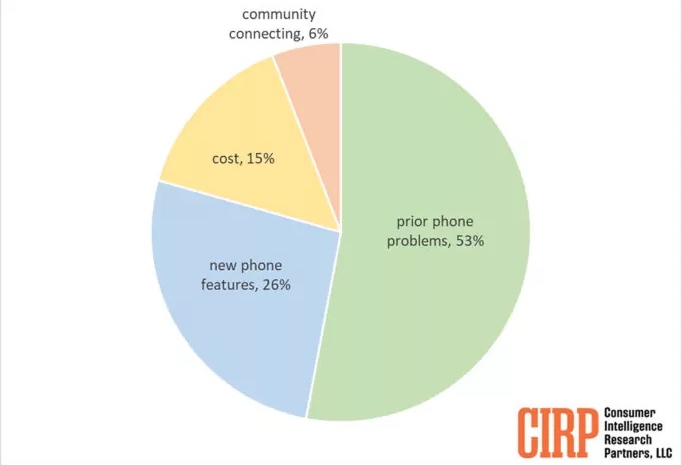 Nyní společnost CIRP zpřístupnila další informace prostřednictvím svého Substacku, které blíže osvětlují důvody proč k odlivu uživatelů Androidu dochází. Podle údajů je hlavním důvodem, proč lidé opouštějí Android a přecházejí k iOS, to, že měli problémy se svými telefony. Tvrdila to více než polovina respondentů.