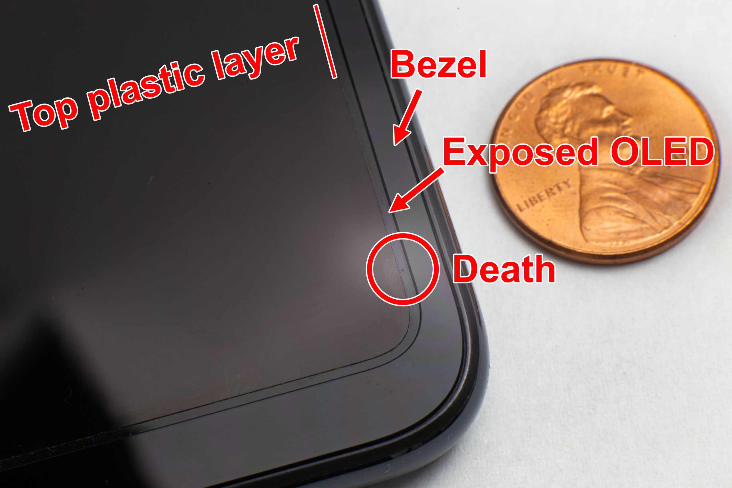 Samsung, BOE a v podstatě všechny ostatní společnosti vyrábějící skládací obrazovky staví tyto ohebné OLED stejným způsobem. Panel je pokryt „ultratenkým sklem“, které je dostatečně tenké a ohebné, aby přežilo proces skládání, ačkoli se nevyznačuje příliš velkou odolností. Celý displej je pak pokryt ochrannou plastovou vrstvou. Tato vrstva je pro přežití displeje klíčová, ovšem nesahá až k okrajům. Každá společnost, která tyto obrazovky vyrábí, ponechává po obvodu okraj, kde je OLED panel obnažený.